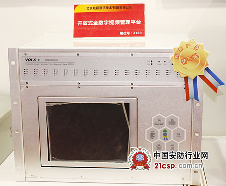 2010年11月2日-5日,由中国安全产品行业协会主办的第十届北京安博会在北京隆重举行。继开幕式之后,第三届创新产品评比活动在在北京国展(旧馆)举行了颁奖仪式,其中蛙视通信开放式全数字视频管理平台VOX-XG荣获安博会创新产品特等奖称号。