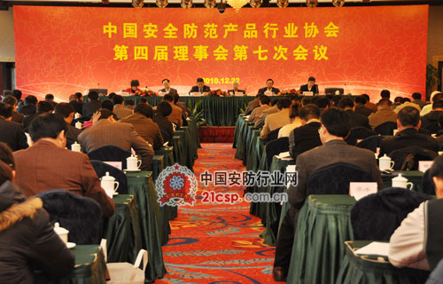 中国安全防范产品行业协会第四届理事会第七次会议于2010年12月22日在北京召开。柳晓川理事长、廖晓村副理事长、司同军副理事长、程琳副理事长、靳秀凤副理事长兼秘书长、李建平副秘书长等协会领导出席此次会议。170余家协会副理事长、常务理事、理事单位的代表参加了会议。公安部信息化局李明甫处长到会并讲话。大会由靳秀凤秘书长主持。