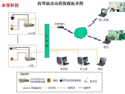 当病人拿到密码后,可将网址、病房号及密码告之其家人和亲友,家人和亲友可以通过 INTERNET 远程探视病人,并可以与其对话。