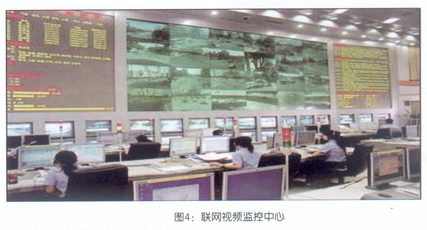 更进一步的说,随着网络的高速发展,普及城城视频监控系统已成为现实,在一个中等城市监控联网的监控点会在 10000以上,分散在各个部门管辖范围内,用已有的各种网络实现系统接入,实现大范围监管。在这样大型的监控系统中,前端的设备不仅实时采集视频图像,还可以收集前端传感器提供的报警信息、位置信息、语音信号等等,利用数据处理技术对各种信息进行处理后,集中显示在大型监控中心的显示屏幕上,提供了直观、有效的城市管理机制(如图4)。