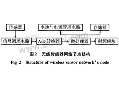 个传感器节点包括1只或多只传感器元件,mote和电池组。传感器主要探测振动和温度的数据,mote负责对这些数据进行处理并通过网络传输到基站。