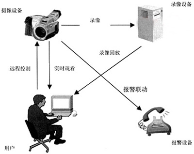 视频监控业务具有悠久的历史,在传统上广泛应用于安防领域,是协助公共安全部门打击犯罪、维持社会安定的重要手段。近年来,随着宽带的普及,计算机技术的发展,图像处理技术的提高,视频监控技术也有长足的发展,视频监控应用越来越广泛地渗透到教育、政府、娱乐、医疗、酒店、运动等其他各种领域。 在国外,视频监控业务主要为个人用户提供安全系统方案,基本定位在个人和住宅应用方面。在国内,视频监控业务主要集中在行业应用,如公安、交通、金融、楼宇等领域,行业用户已成为国内视频监控市场的主要增长点。 视频监控的基本业务功能是提供实时监视的手段,并对被监视的画面进行录像存储,以便事后回放。在此基础上,网络视频监控系统可以对监控装置进行远程控制,并能接收报警信号,进行报警触发与联动。业务功能如图1所示。
