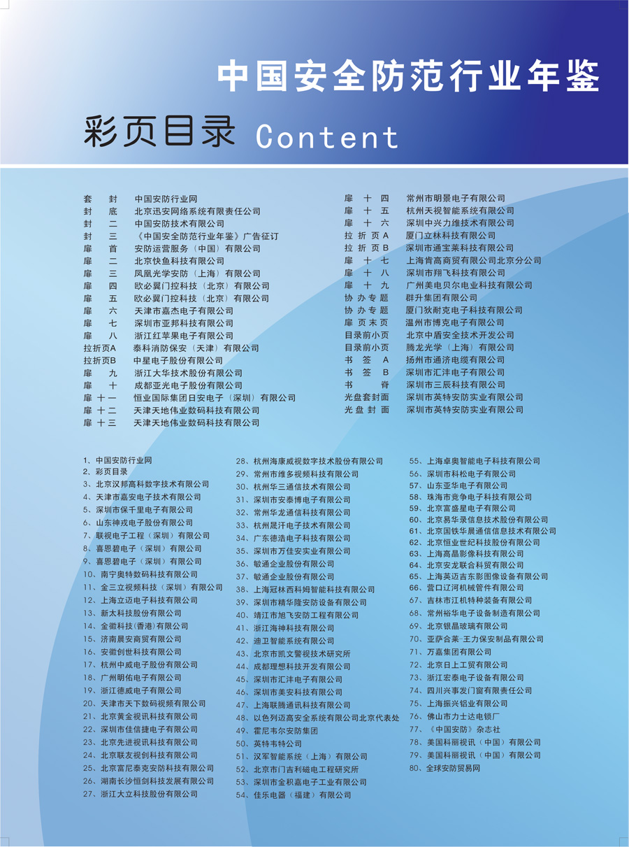 | 封 套 | 中国安防行业网 | 扉十四 | 常州市明景电子有限公司 |