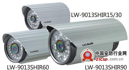 该产品采用高性能1/3"SonySuperHADCCD,水平分辨率550TVL(彩色),600TVL(黑白),低照度0.05Lux,0Lux(红外灯开启),支持电子彩转黑功能,实现昼夜监控,支持自动白平衡、自动增益控制、背光补偿功能,红外照射距离可达90米(9013SHIR90),防水防尘设计,达到IP66的防护等级。(详情请登陆www.leawin.com)