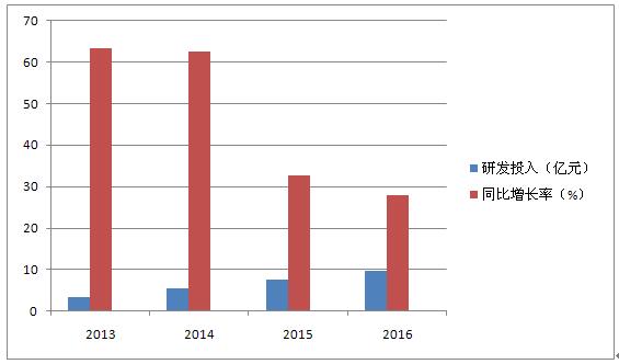 海康威视这几年研发投入非常大,每年销售收入7%~8%左右作为研发投入,2016年上半年,研发投入接近10个亿,虽然每年的增长幅度在减低,但研发投入总量在持续增加。
