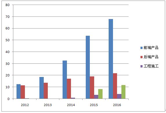 从2012年半年报到2016年半年报来看,海康威视主营业务收入构成上前端产品从最初与后端产品保持基本持平,到2016年上半年前端产品收入达到67.94亿元是后端产品的3倍还要多,之主要得益于安防网络化的推进,前端IP化的迅速发展。