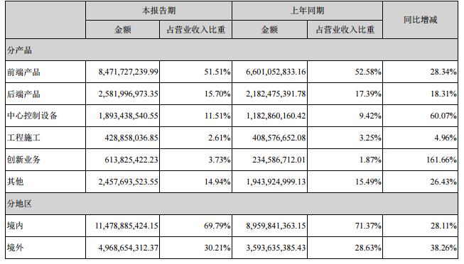 在市场方面,海康威视国内外市场依然保持快速增长,其中国内市场依然占据头把交椅,实现114.79亿营业收入,占营收的69.79%,海外市场实现营业收入49.69亿元,增速明显高于国内市场。虽然海康威视在报告中提到海外市场受不确定性影响,持续波动,但海康威视通过成立分公司,持续拓展海外销售渠道,在新西兰、肯尼亚、乌兹别克、匈牙利等重点一带一路沿线国家成立销售渠道。国内市场,随着新疆安防市场的崛起,海康威视成立乌鲁木齐海视新安电子技术有限公司以及成都海康威视数字技术有限公司。