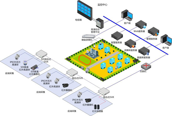 采用混合式 DVR 接入,无缝融合标清模拟监控系统、高清闭路电视监控与高清网络视频监控系统;