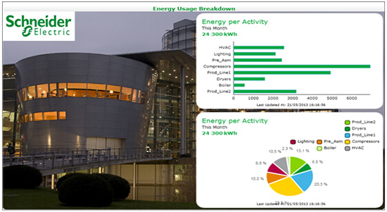 施耐德电气的SmartStruxure可对不同配电模块如照明、暖通、锅炉、冷机等进行分项计量