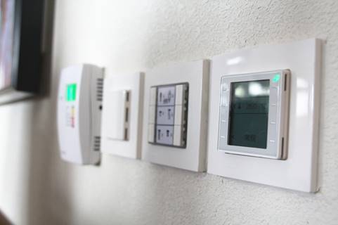 整体房间解决方案(TRA):15组RoomOptiControl模块使最终用户能根据需要调节灯光和室内温湿度。TRA的效率功能可自动探测房间内不必要的能源消耗。“绿叶”按钮可提供最佳操作的相关提示,帮助实现节能,提高楼宇能效水平。