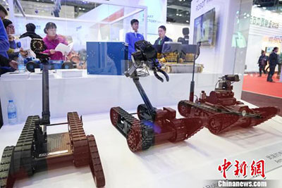 2015世界机器人大会23日在北京举行,各种创新机器人精彩亮相,其中中国自主研发的用于公共安全、防恐反恐的特种机器人,备受关注。