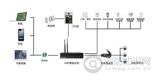 系统主机、红外探头、模拟/网络摄像机、可燃气体探测器、烟雾探测器、门磁、窗磁、玻璃破碎探测器、视频服务器、紧急按钮和门禁系统。