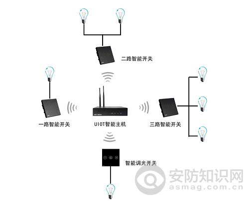 系统主机、单路智能照明开关、单路可调光智能照明开关、双路智能照明开关、三路智能照明开关。