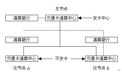 主节点发卡的从属模式的优点是系统方法简单、次节点不需发卡,所以比较适合大城市连接小城市的跨地区联网,如上海交通卡清算中心与无锡、苏州联网就可采用该种模式。