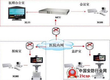这一系统主要采用索尼高清视频会议产品根据不同部门、不同场所的应用特点打造而成。医院会议室采用了凝聚Bright Face等多项索尼独特成像技术的高清1080P视频终端PCS-XG80;医师办公室部署则采用了桌面式高清一体远程诊治终端PCS-XL55,PCS-XL55操作非常简便,医生无需再安装任何额外的显示设备即可加入视频会议中;考虑到对于探诊病人的实际需求,在探病室和重症病房则部署了移动性更好的XG80推车式一体机。