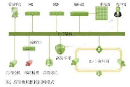 针对体育场馆监控的特点,视频监控传输将以IP网络为主,以无线覆盖为辅助。在视频监控系统中,广泛使用的组网形式是星形组网形式,也有部分场合采用的是基于交换机来构建以太网环形网络进行组网和基于PON分光技术进行组网。