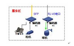 配置球机/枪机连接到编码器,编码器通过电口或SFP光纤接入交换机中,同时可以选配IP电话方便报警及和中心的互通。具体见图4。