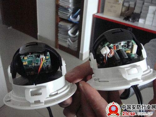 仔细观察摄像机内部构造,电路板做工不同,采用的芯片不同。真机采用的DSP芯片可以达到600线,仿品一般采用SONY的420DSP芯片。