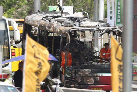 2008年5月5日,上海杨浦区842路公交车发生火灾,造成3人死亡,12人受伤。经过上海市公安局初步勘查,5日上午9时许发生的公交车火灾系有人携带易燃物品上车所致。