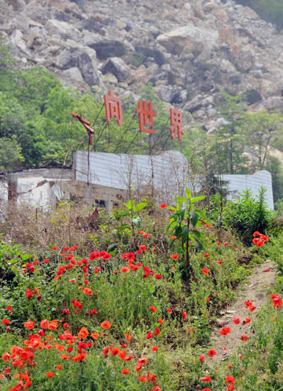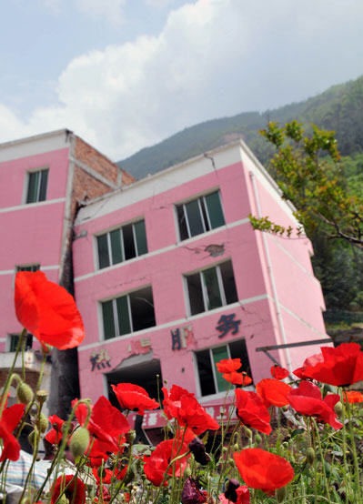 在坍塌的楼房下,在堆积的瓦砾边,在被大地震摧毁的土地上,惨烈的瞬间已被凝固了将近一年,而各种各样的鲜花,雏菊、映山红、虞美人、牵牛花……灿烂顽强地在废墟间开遍。在汶川地震一周年即将来临之际,鲜花盛开,祭奠北川之殇。