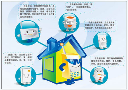 通常情况下,家庭防盗报警系统利用主机,通过无线或有线连接各类探测器,实现防盗报警功能。主机连接固定电话线,如有警情,按照客户设定的手机或则电话号码拨号报警。