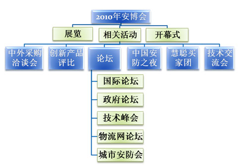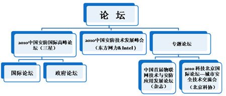 二、展会论坛介绍 2010年安博会论坛整体结构由三部分组成:2010中国国际高峰论坛、2010中国安防技术发展峰会和专题论坛三部分。其中国际高峰论坛包括国际论坛和政府论坛,专题论坛包括中国首届物联网技术与安防应用发展论坛和2010科技北京国际论坛—城市安全技术交流会。