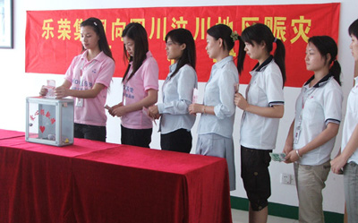 2008年5月12日四川汶川发生了8级强震,地震对西南地区造成巨大的破坏,山体滑坡,房屋倒塌,人们被掩埋在废墟中,地震破坏的区域人们流离失所。面对突然奇来的自然灾害,乐荣集团全体员工表现出了高度的社会责任感和高效的团队合作力,奉献出了最真挚的爱心。截至目前为止,乐荣集团通过多种方式共计向灾区捐赠了20余万元的善款用于灾后重建。