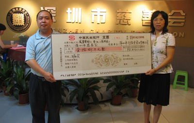 乐荣集团行政副总裁王继豪代表公司向深圳慈善会捐款