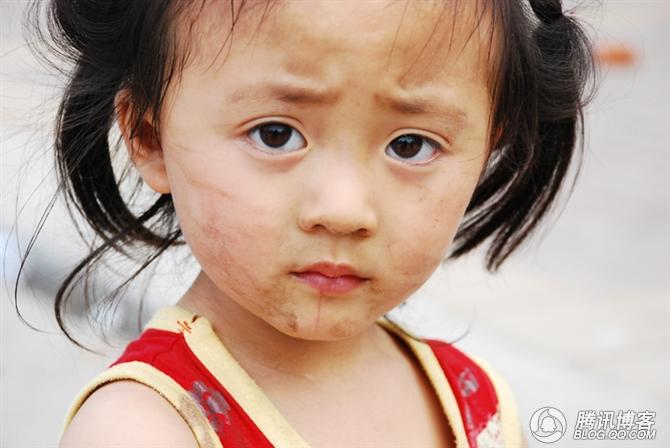 天真的眼神,也许她还不知道地震已将她家人带走