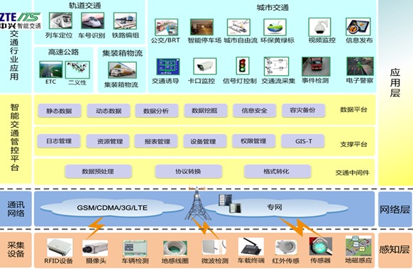 中兴智能是第一批从事智能交通(ITS)产业的高新技术企业,为用户提供完整的基于物联网的综合交通运输行业智能化系统解决方案,分为感知层、传输层和应用层,包括了高清电子警察系统、卡口系统、智能公交系统、超速抓拍系统、开放式停车收费系统、动态违法行为抓拍系统、高速公路全程监控系统、施工现场视频监控系统和综合管理平台等公共交通安防系统,为智慧城市建设和实践提供了实时的交通数据和信息服务,为用户创新、开发创新、大众创新和协同创新提供了一个途径。