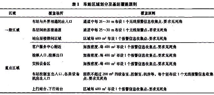 车站基站系统的覆盖实施步骤为:对覆盖现场进行勘测,有针对性地规划覆盖基站的位置.保证覆盖全面稳定,无死角;对重点区域加强覆盖强度.重点区域内的基站之间有~定的重叠保证信号的可靠;对需要特殊考虑的区域加^基站进行全面覆盖;进行全面测试.保证覆盖质量。车站区域划分及基站覆盖原则见表。