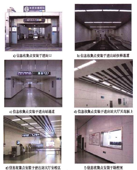 图5北京某地铁线车站1层进站厅平面简图、信息收集点覆盖设计图和安装实图。
