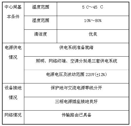 1.所有需要中心和分中心的建设应具备电源、接地、适合的温湿度及施工电源等相关条件,详细可参见下表。