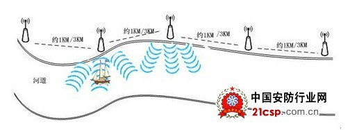 1、在河道两岸及附近岛屿沿岸安装15到30(根据具体公里数量进行设计)台54Mbps无线收发器外接120/60度扇区天线(天线选型视具体环境决定)实现对北岸至南岸两条航道北岸部分的无线覆盖;河道两岸根据现场情况进行无线设备安装,54Mbps无线收发器外接120/60度扇区天线(天线选型视具体环境决定)实现对南岸至北岸两条航道北岸部分的无线覆盖;