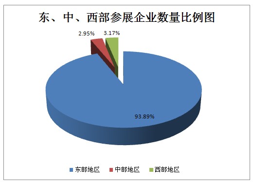 安防行业作为我国电子制造业的子类,行业发展地域分布同我国经济发展的基本相似,呈现东部地区安防企业密集分布,中西部地区安防企业分布较少。从2012年安博会参展企业地区分布来看,这种态势很明显。需要指出的是安博会绝大多数为生产、服务型企业,工程企业极少,此比例图在一定程度上也表明安防制造企业基本上集聚在东部地区,而中西部地区以安防工程企业为主有很大关系。