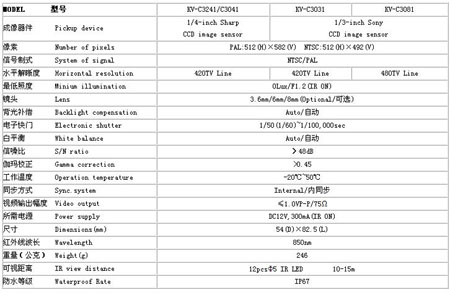 产品概述: -------------------------------------------------------------------------------- (日夜两用)摄像机 0 lux (IR开启),在红外线投射范围內,彩色摄像机(日夜两用)在黑暗中使用时,彩色图像自动转换成黑白, 适合日夜24小时监视。 外型结构采用高硬度铝合金外壳,有效防水值IP 75,适合室內外裝置。配置进口红外灯18只,红外有效距离15米,配支架。