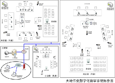 根据大、中、小法庭的实际面积和现场布局,数字采编主机安放于书记员操作台内,通过网络在计算机主机房可进行远程管理;这样的优势在于节省人力;由于光盘刻录集成在书记员终端软件里面,所以操作简单、方便,每次开庭由书记员操作即可,同时将开庭前的庭审案由通过网络传送到中心服务器时,服务器开始同步录像。
