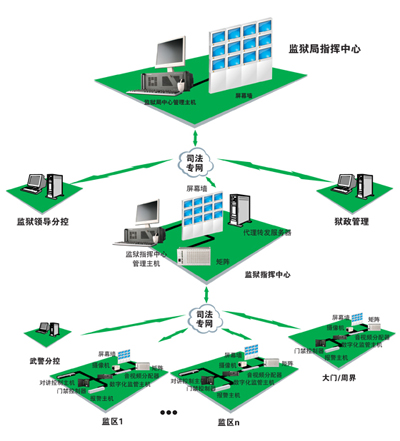 针对监所安防管理需求,和“省、市、县”多级联网管理需求,量身定做网络结构。