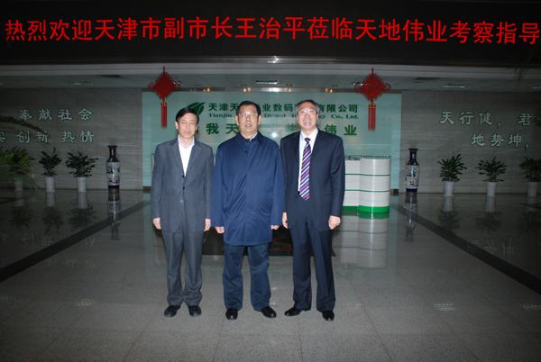 4月23日上午,天津市副市长王治平带领市科委、市经委相关部门负责同志,在滨海高新区管委会工委书记周思纯、副主任刘力的陪同下,莅临天地伟业,就我公司承担的天津市自主创新产业化重大项目进行深入调研指导。