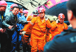 汾西矿山救护大队队长陈永生说:“我们发现生存者以后,先给他们送去营养液加强和保持体力,做简单的思想工作,就分批有序向外运输。有时为了加快进程,我们就跳下水推着筏子走。”到了井下停车场等安全地带,给被困人员盖上被子和眼罩,抬上轨道车升井,由医护人员作简单检查,对体虚者插氧输液,立即送上救护车。公安部门对从煤矿现场到主要医院的公路实行了严格的交通管制,救护车行驶快速平稳。