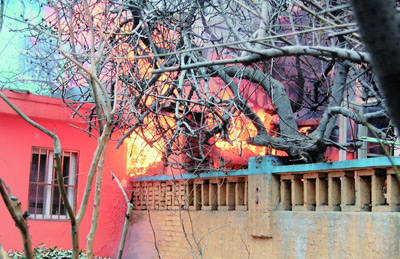 半岛都市报2月16日讯(记者 陈界交 实习生 赵丽云) 2月16日上午10时30分,贵州路一处楼院突然起火,火苗高达三米多,三辆消防车闻讯赶到,由于扑救及时,火灾未造成人员伤亡,但堆放在院内的家具已被烧得面目全非。10分钟后,无棣三路一处废弃的居民楼后院,堆放的大批杂物也燃起大火。据了解,两起火灾都疑为燃放烟花引起。