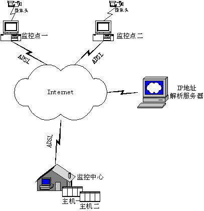 原来基于固定ip地址的数字视频网络监控系统,几乎可以直接使用这种模式。当然,原来如果是预先配置远程监控点ip地址的,现在需要改变成预先配置远程监控点的internet域名。编写程序的时候只需要调用相应api函数,就可以获得internet域名对应的ip地址。