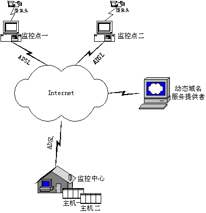 但是这种方式也有一些不足:1. 如果系统规模较大,例如有100个监控点,那么每一台计算机每年都需要交纳服务费n元,监控系统的服务费就需要100*n元,整体费用比较高;2. 如果动态域名解析服务器需要一些个性化功能,无法定制。