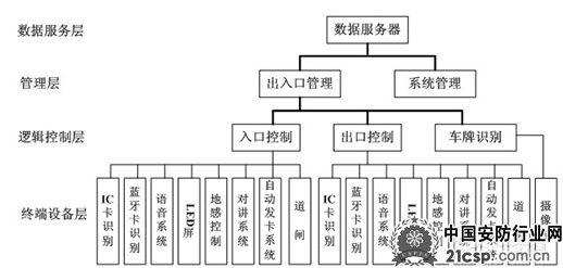 管理层:分出入口管理和系统管理。出入口管理是停车场出入口现场管理系统,负责现场控制设备的监控,现场出入车辆管理监控,主要有监控电脑、管理软件构成。