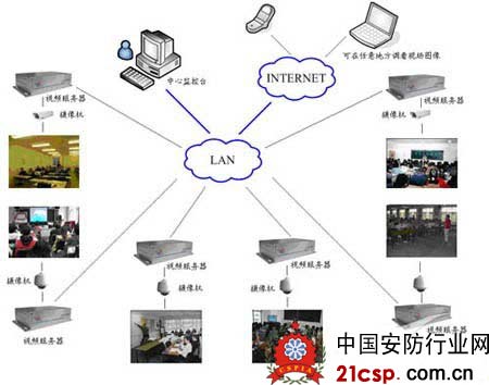 前端系统由每个考场的2台摄像机组成,将摄像机分别安装在教室的前后,装在前面的摄像机能监控所有考生的正面信息和教室前、后的监考老师,将现场的音视频等数据进行编码,然后通过网络传输到后端管理设备。后面的摄像机应该具备高倍变焦功能,这样的话,就能拍摄考场内的特写镜头,使细微的变化都能呈现在画面中。