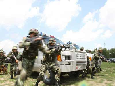 日前,哈尔滨市担任火炬安保和护卫工作的省武警总队二支队,根据保卫火炬可能出现的一系列恐怖活动等情况,进行了有针对性的涉奥反恐模拟演练。一伙破坏份子占据一辆公共汽车,并挟持人质,欲冲击奥运火炬传递活动。接警后,省武警部队二支队官兵紧急赶赴现场进行处理,经过一番激烈搏斗,恐怖分子被生擒,人质获救。 7日,在武警二支队的训练场上,特战队员进行了实弹反恐演练,期间使用了新型防弹车、警用弩箭等新式装备和尖端武器,进一步提高了官兵们处置突发事件、保卫人民生命财产安全的能力。