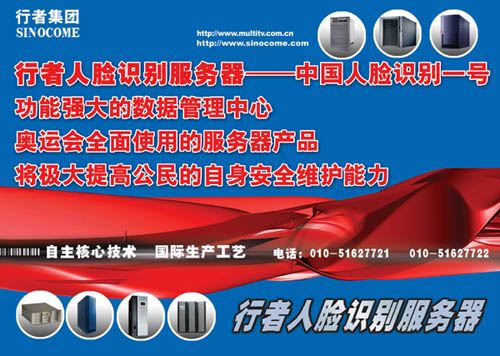 2006年4月25日,行者集团在中国计算机报上正式发布用于奥运实战的行者人脸识别服务器。“中国人脸识别1号”―――该服务器是能记录百万人次功能强大的数据管理中心,是北京2008全面使用的服务器产品,将极大地提高社会公共安全和公民自身安全的维护能力。作为奥运安保配套工程的一部分,行者人脸识别服务器已在亚洲最大的火车站-北京站和北京西站开始安装使用,效果良好,并将陆续在北京500家商场投入安装。