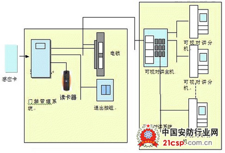 出入口管理系统(门禁及可视对讲系统)是利用门禁管理系统和可视对讲系统对内部人员及外来人员进行管理。小区用户及内部工作人员持有效感应卡开启系统规定的出入口;对外来访客,用户则通过可视对讲系统来判断,避免了以前由保安人员管理出入口而造成的漏洞。