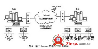 图4所示为一个基于Intemet的楼宇自动化系统,通过Intemet其主系统与分系统实现了不同地理位置的互连与统一管理,并能从Intemet上获取楼宇自动化系统相关的各类数据与资源。
