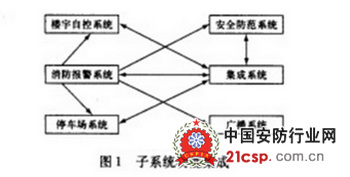 该方式是系统集成的最初手段,通过增加一个设备子系统的输出/输入接点或传感器,接人另一个设备子系统的输出/输入接点进行集成;或是将现场控制器加以改造,增加串行通信接口,使之可与其他子系统进行通信,子系统之间的信息交换可以通过通信协议的转换实现。子系统功能集成如图l所示。由于各子系统相对独立运行,各子系统之间不能很好地进行协调动作,难以完成全局性突发事件,因而它不是真正的集成。